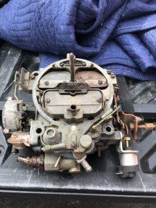 I had her running this morning. Def a carburetor issue. I pulled out the carb and Saturday, my sis-inlaw (My wife’s brother’s wife) Nikki is coming over to help me rebuild it. She’s almost as excited as me to work on this. Here’s the Rochester 4BBL 4006A carb.