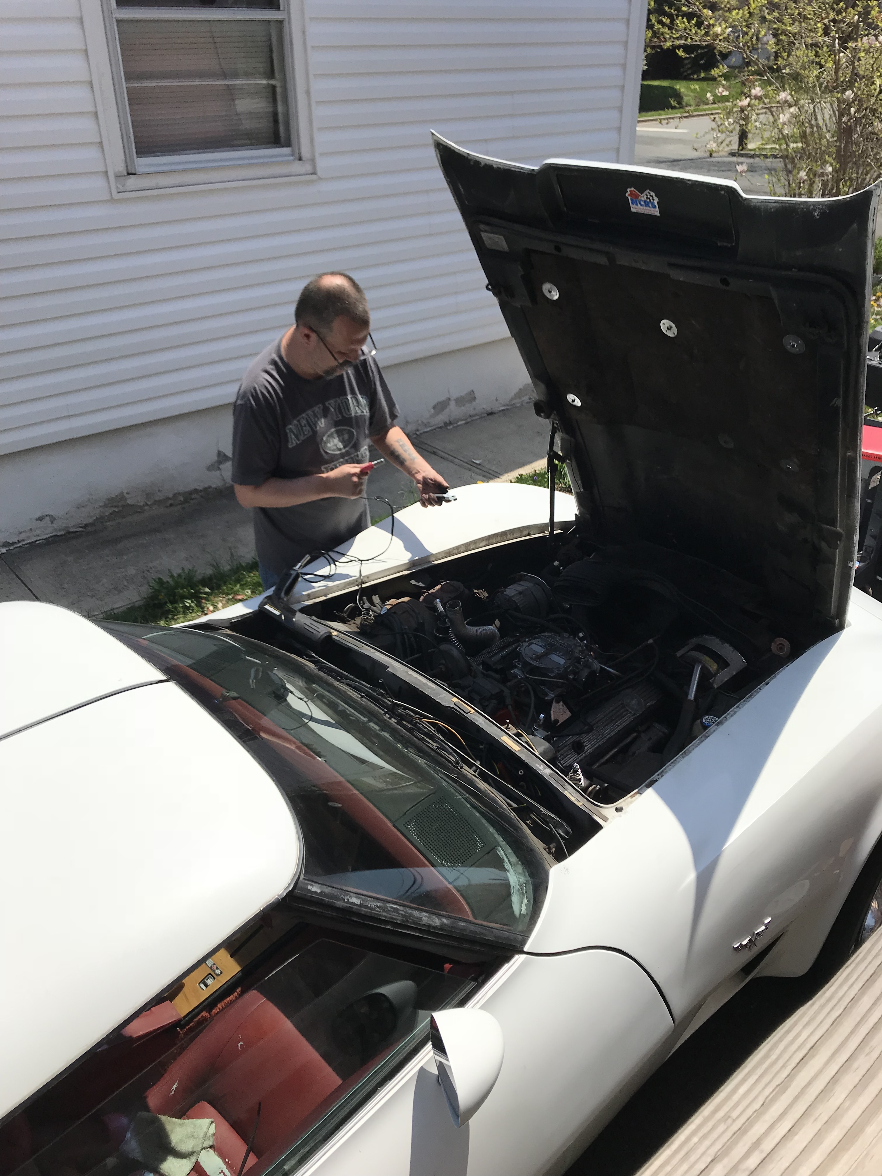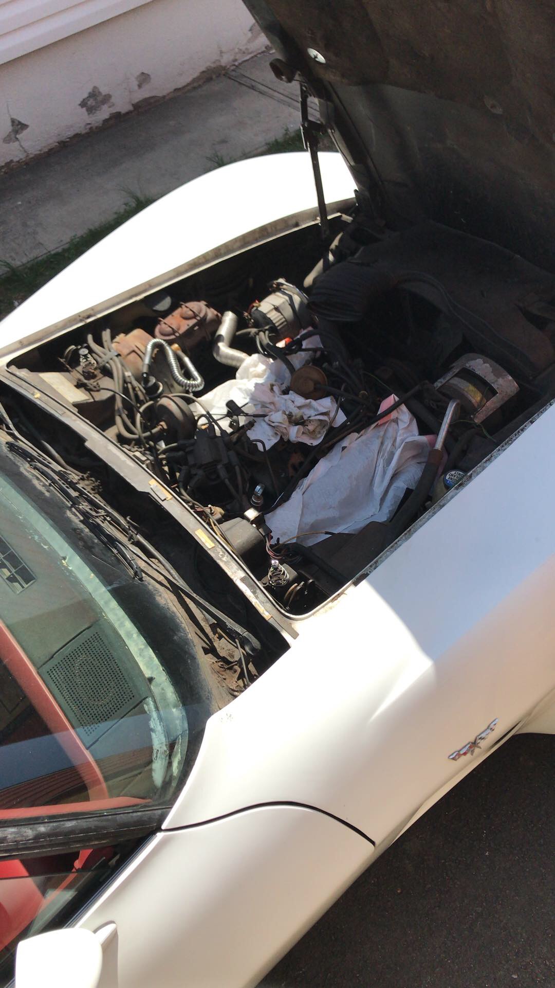 The wife is away for the weekend and I’ve been working on the Vette All weekend. Gas line is changed, plugs are done, rotor and cap are in. The lower radiator hose is done. I’m HOPING to finish the upper radiator hose and the thermostat done tomorrow. Also hoping I can get a good idle to properly time her.
